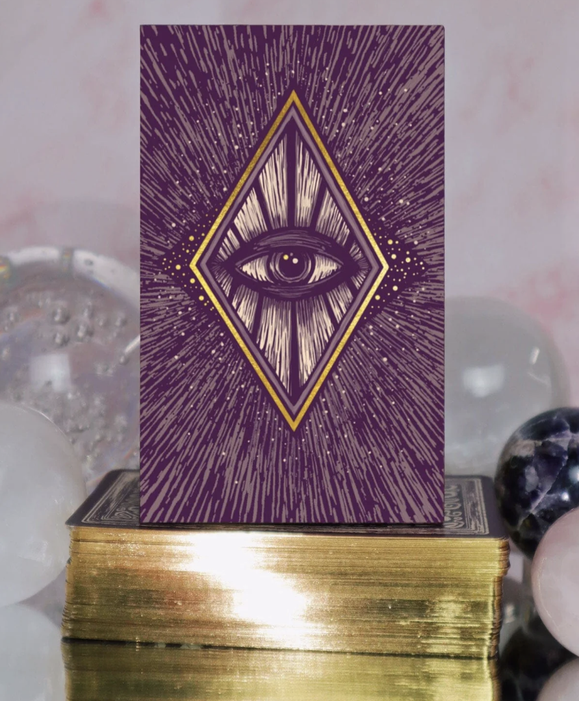 A full size, violet light visions tarot deck to accompany you wherever you go. Comes in a protective box, with metallic gold edges that gleam while you do your daily pull.