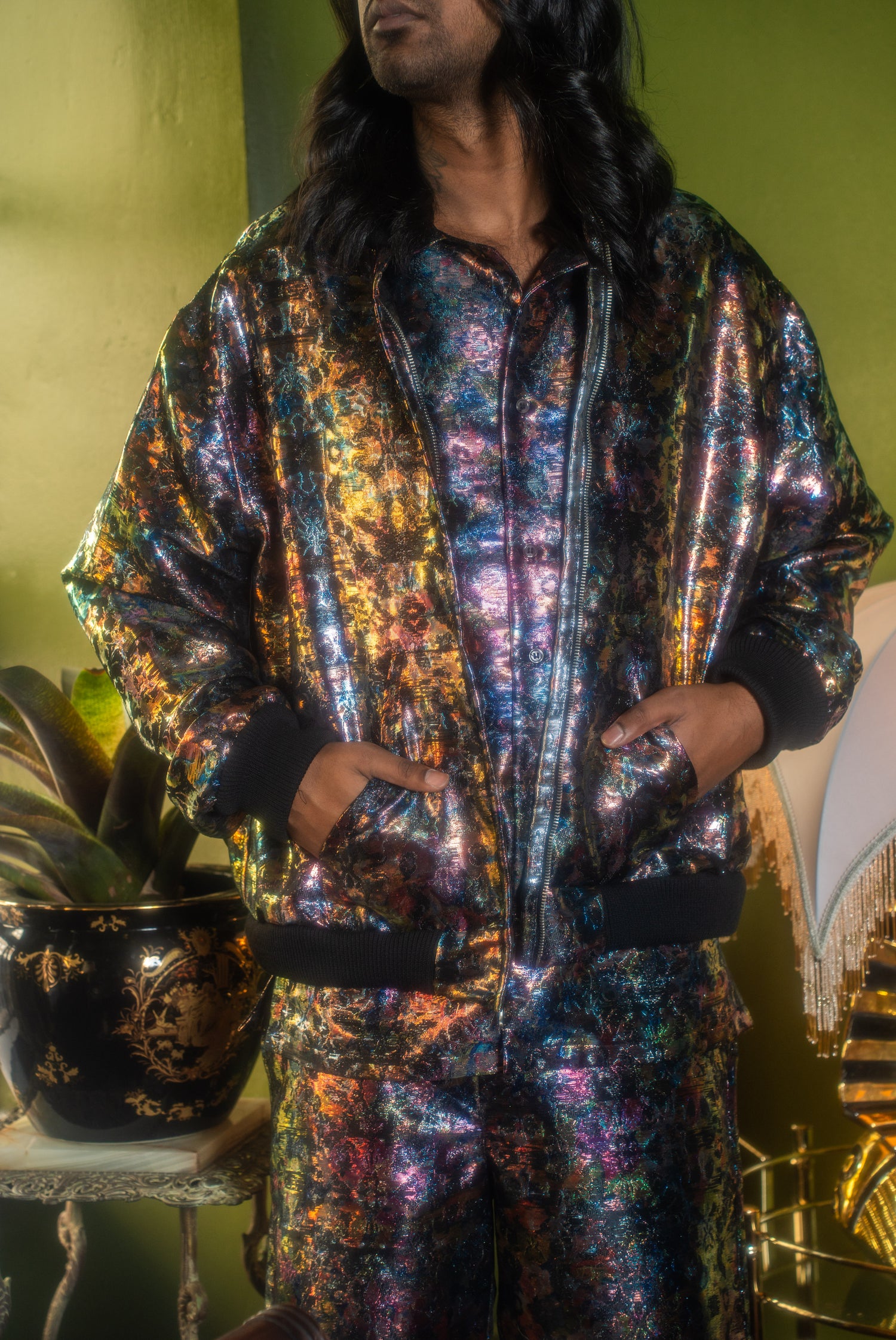 Introducing the Men's Reversible Dark Brocade Bomber Jacket, a limited-edition statement piece cut for those who live between worlds. Designed in a small-batch run and coveted since its first teaser release, this jacket sold out instantly in person and now it’s finally here.