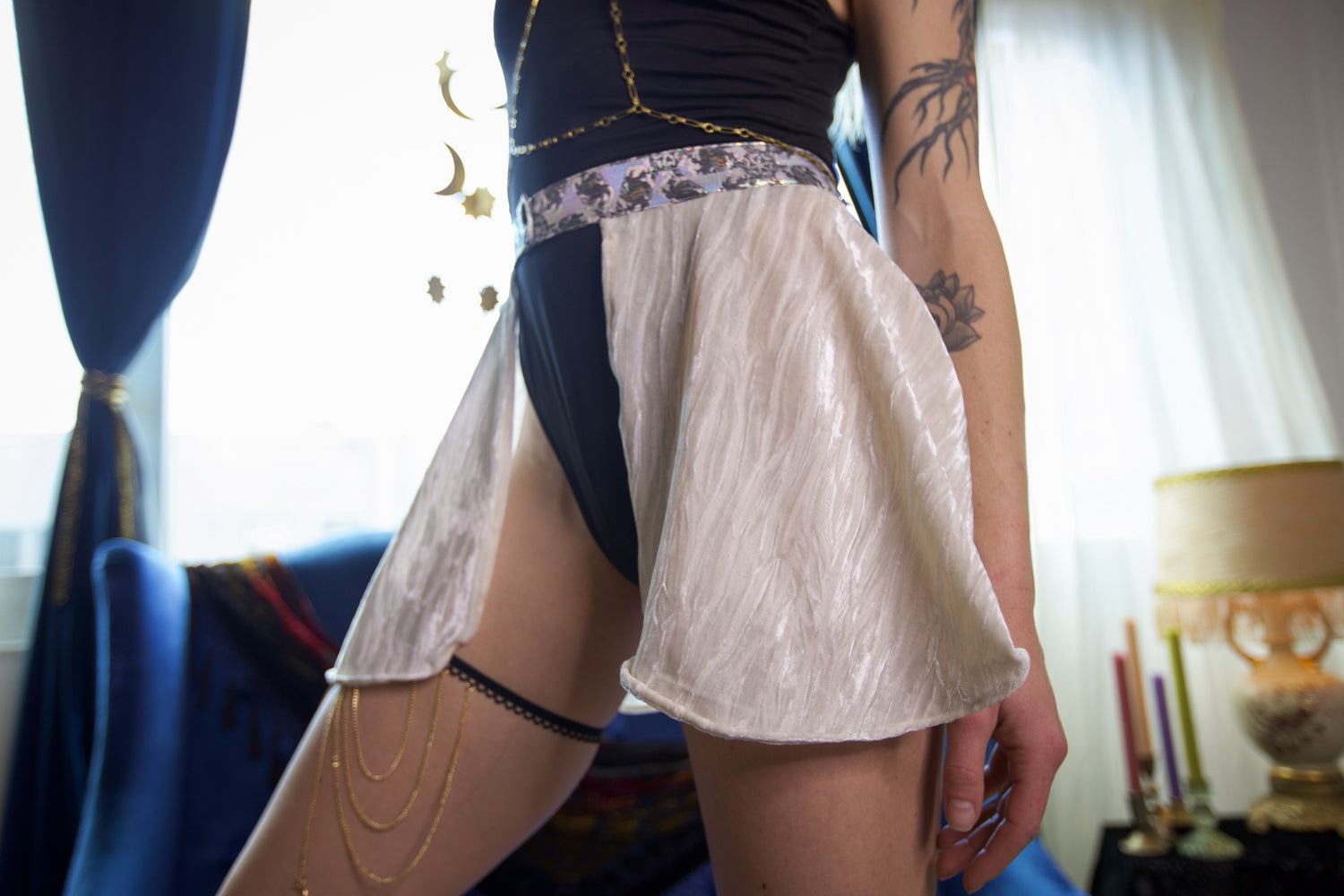 Iridescent patterned waistband draws attention to the center of your being. A dreamy design that is perfect for dancing at a festival or at any gathering of your liking.